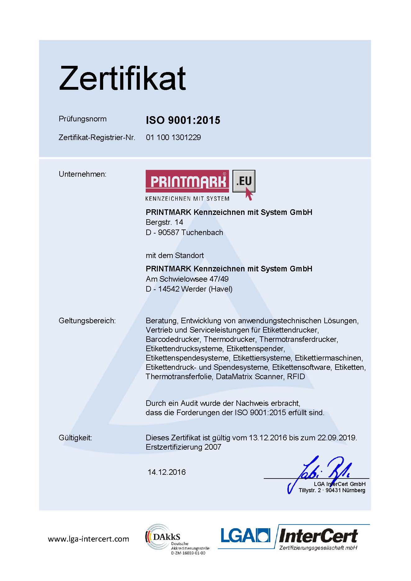 Wir sind qualifiziert nach ISO 9001:2015